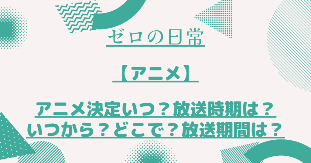 『ゼロの日常』アニメいつから?