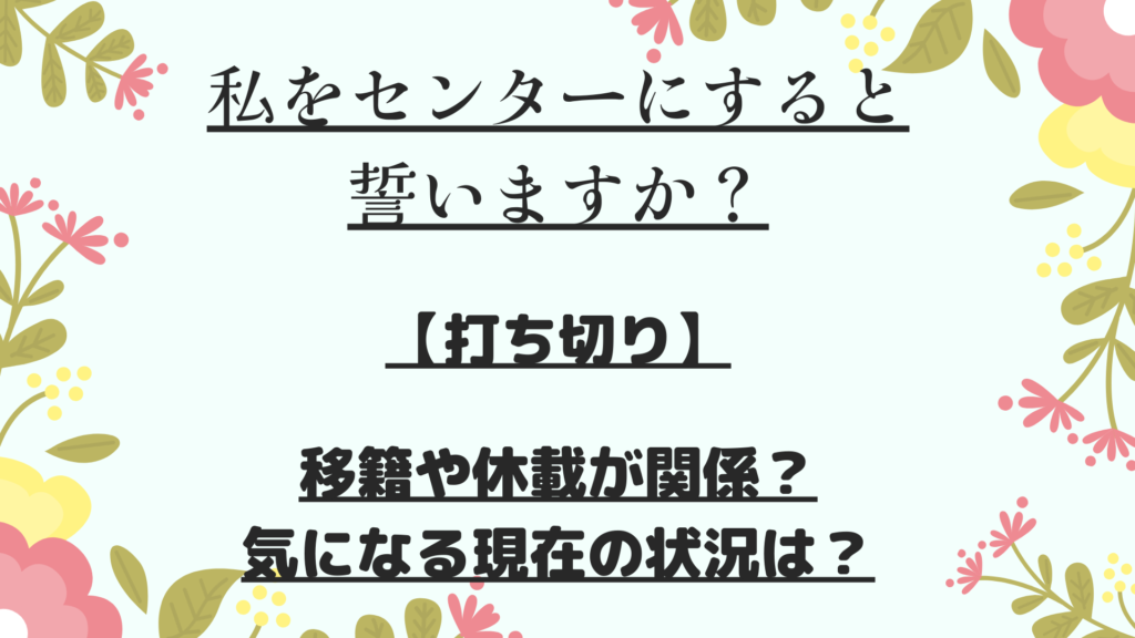 | 『私をセンターにすると誓いますか?』打ち切り記事について紹介していきます |