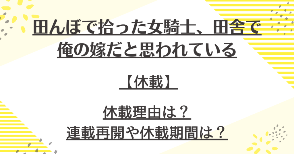『田んぼで拾った女騎士』漫画の休載について、詳しく紹介しました。